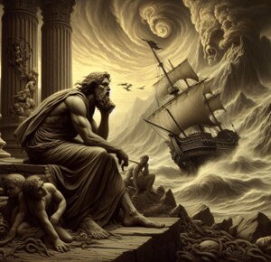 Odysseus is also often in conflict with the gods, especially with Poseidon, a deity of the sea that causes him and his crew numerous adventures during their return to their homeland.