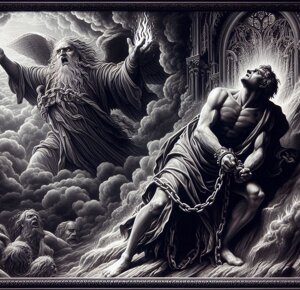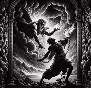 The latter in fact decides to punish him, chaining him to a cliff at the end of the world, and then make him sink into Tartarus.